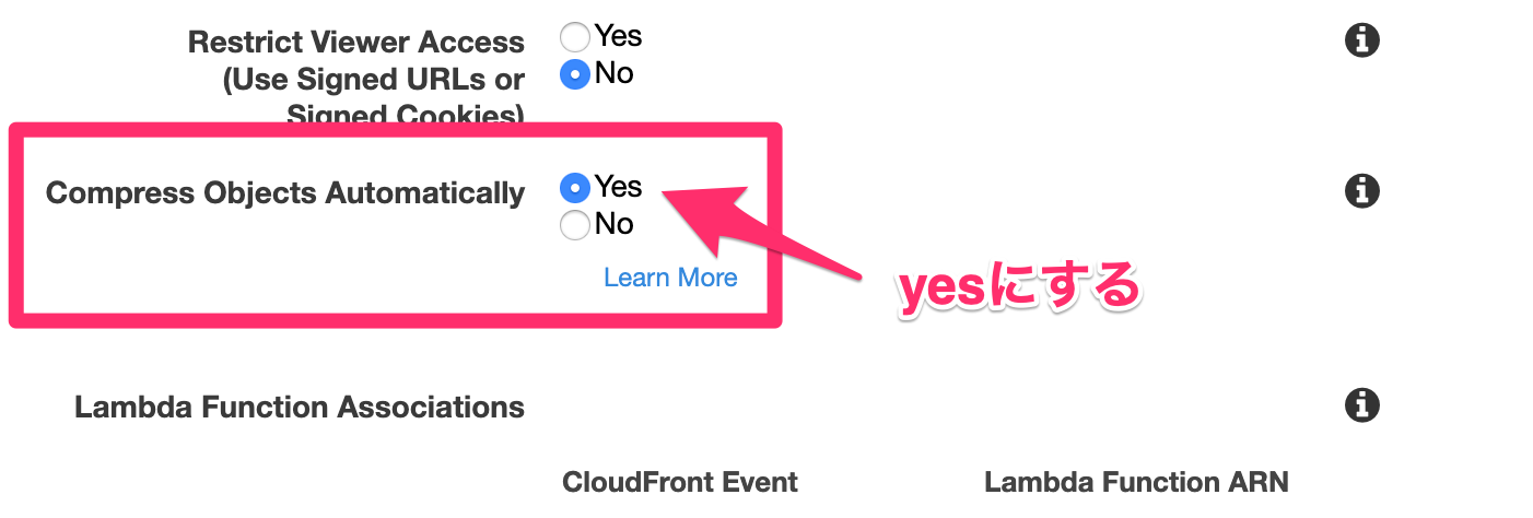 調べていくと CloudFront の場合はボタン一つで設定出来るとのこと。